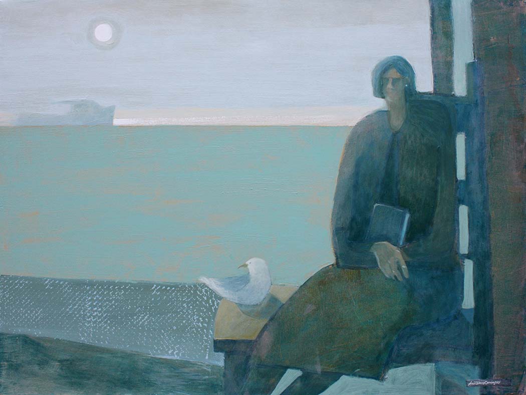 Hi Pat. Thanks for reading. 🙂 I appreciate your noticing the subtlety and quiet, like the feeling just after reading a very good book. I just want to sit with it for a while and feel the story and author. At that point the details don’t matter– just the reader’s (my) sense of a little story. The proportions overall in this piece are ‘off’ from reality as I wanted the overall gist or felt reaction to the whole picture to be internalized as a whole with understated color, minimal elements or detail. I’m sure the proportions of the figure will feel not quite right for some and not even noticed by others. It’s all good. 🙂