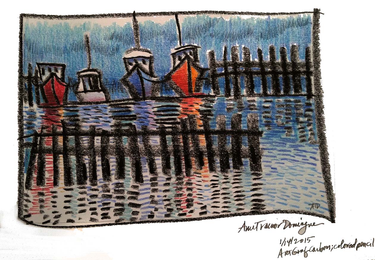 A red-colored work boat in Provincetown harbor provided the needed intensity to dive into this subject in various ways and create some final paintings. Even after many years I am still intrigued by this working pier in Provincetown. The activity, the aged boats that still work every day, the people who go out on the sea day after day–I admire them for their bravery. I once thought I would like that life but have since come to my senses. Seasickness and I are companions unfortunately but I still love being on the water when I can. So even a landlubber can have great appreciation for things connected to the sea. I have plans to explore this motif and weave in some themes of connectedness, friendship and awe. To be continued…