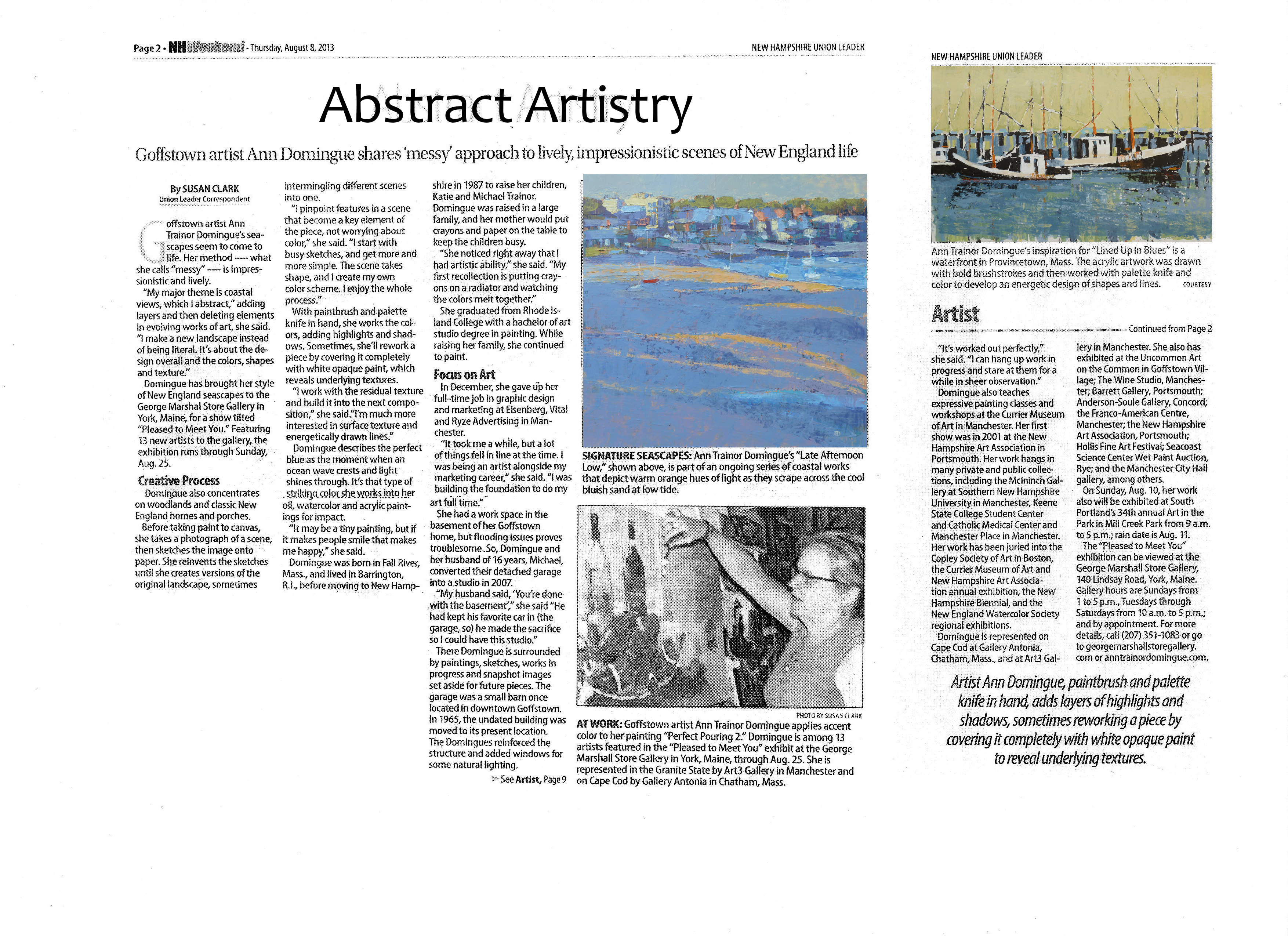 Here are two recent articles about my art process. If you would like to know more, please ask or contact one of my galleries which you will find on my website at www.anntrainordomingue.com